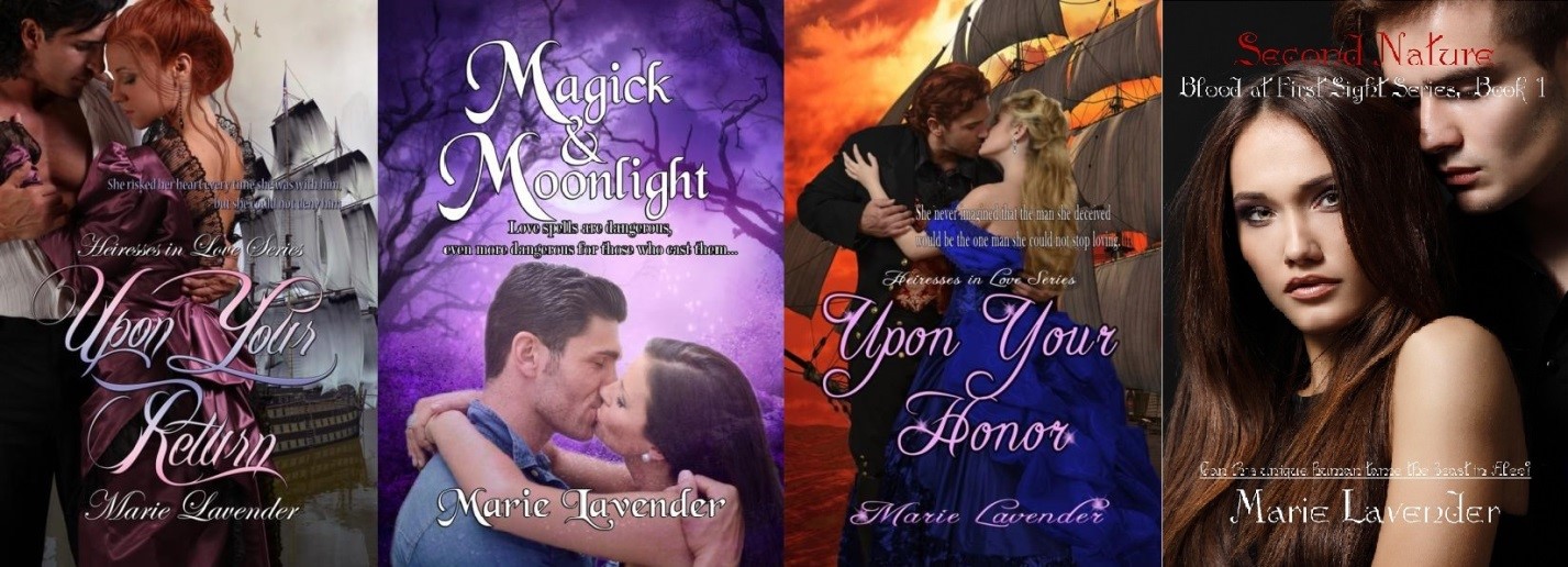 Marie Lavender lives in the Midwest with her family and three cats. She has been writing for over twenty years. She has more works in progress than she can count on two hands. Since 2010, Marie has published twenty books in the genres of historical romance, contemporary romance, romantic suspense, paranormal romance, fantasy, mystery/thriller, literary fiction and poetry. Lavender just released Second Nature, a paranormal romance/urban fantasy, in December of 2014. She released Magick & Moonlight, a romantic fantasy, back in March of 2014. Upon Your Honor, which released in April of 2014, is her second historical romance. Her current series are The Heiresses in Love Series, The Magick Series and The Blood at First Sight Series. Feel free to visit her website at http://marielavender.com/ for further information about her books and her life. Marie is also on Facebook, Twitter, Google+ and LinkedIn.